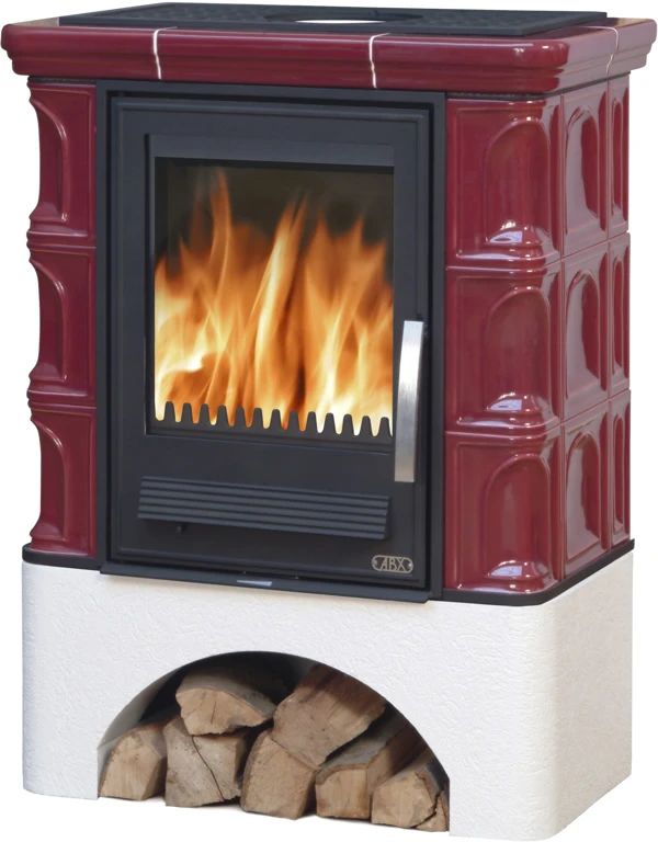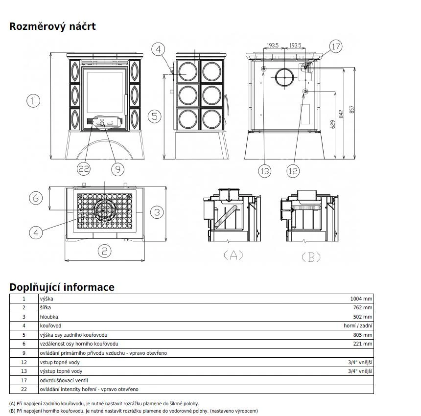 Kachlová kamna na dřevo s kombi vložkou (litina/plech) a teplovodním výměníkem 6,9 kW