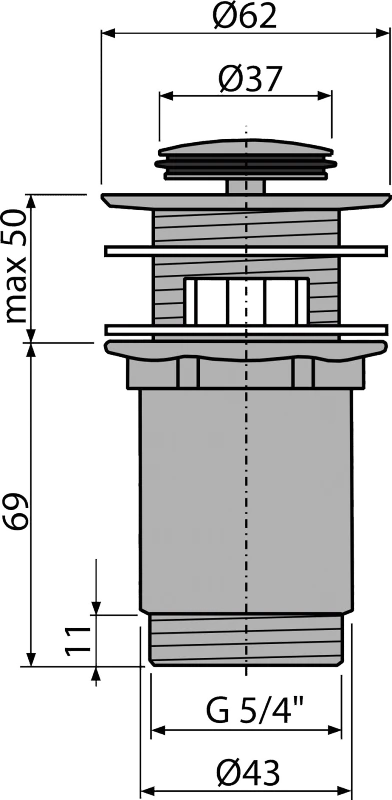 ALCAPLAST Výpust umyvadlová CLICK/CLACK G 5/4" s přepadem, malá zátka, kov, chrom-lesk A391