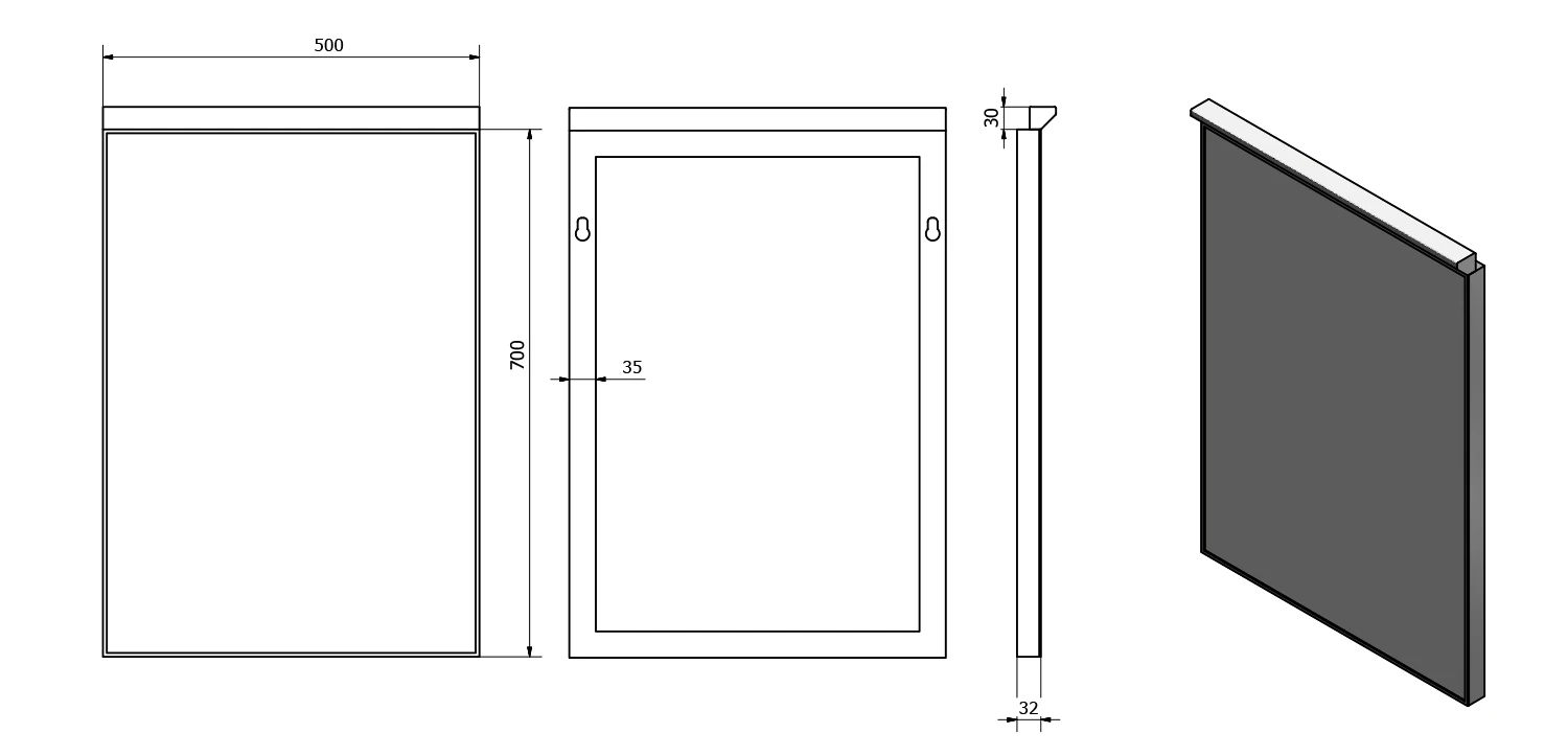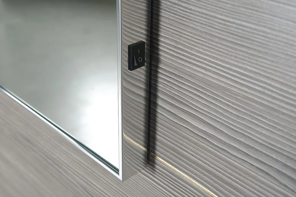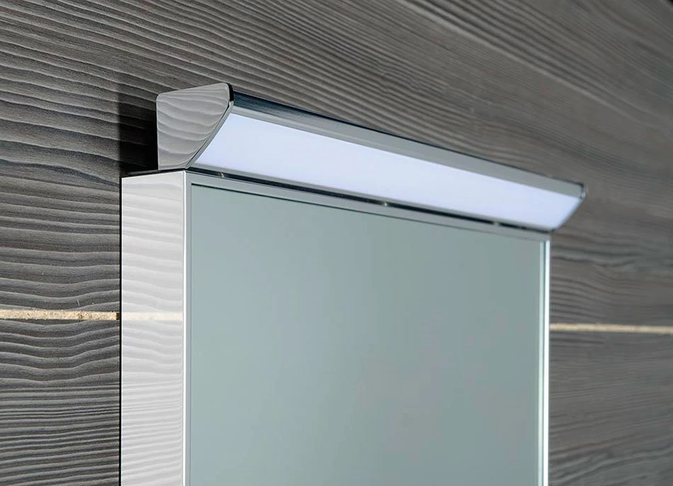Zrcadlo je zasazeno v úzkém hliníkovém rámu a vybavené LED osvětlením. Dlouhá životnost LED osvětlení (cca 30 000 hodin) a nízká spotřeba jsou hlavními výhodami oproti klasické zářivce.