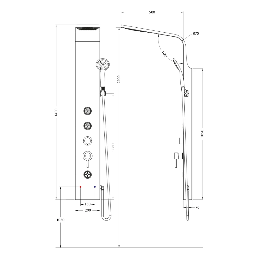 Vlastnosti ZnačkaAQUALINE Výška963 mm BarvaChrom MateriálABS/nerez TvarKruhové Funkce sprchyDéšť, M...