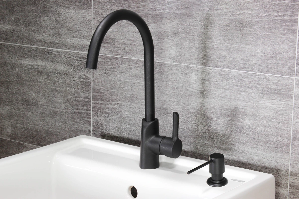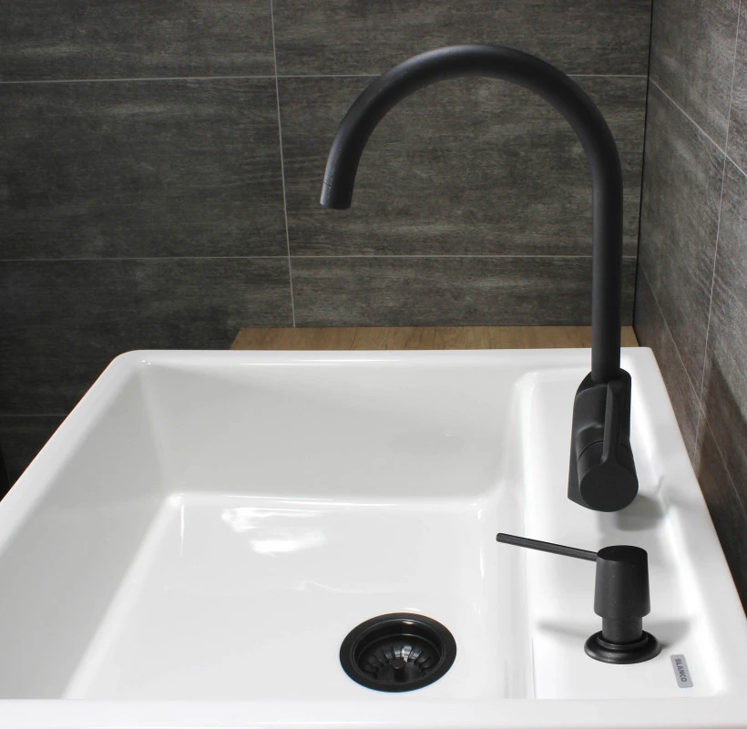 Dřezová baterie Aquasanita Sabia Grace 5523JG působí luxusním dojmem a elegancí, bude se skvěle vyjímat v moderní kuchyni. Spolu s granitovým dřezem v černé barvě bude působit jako jeden celek. Naopak skvěle vynikne v kombinaci s bílým keramickým dřezem.