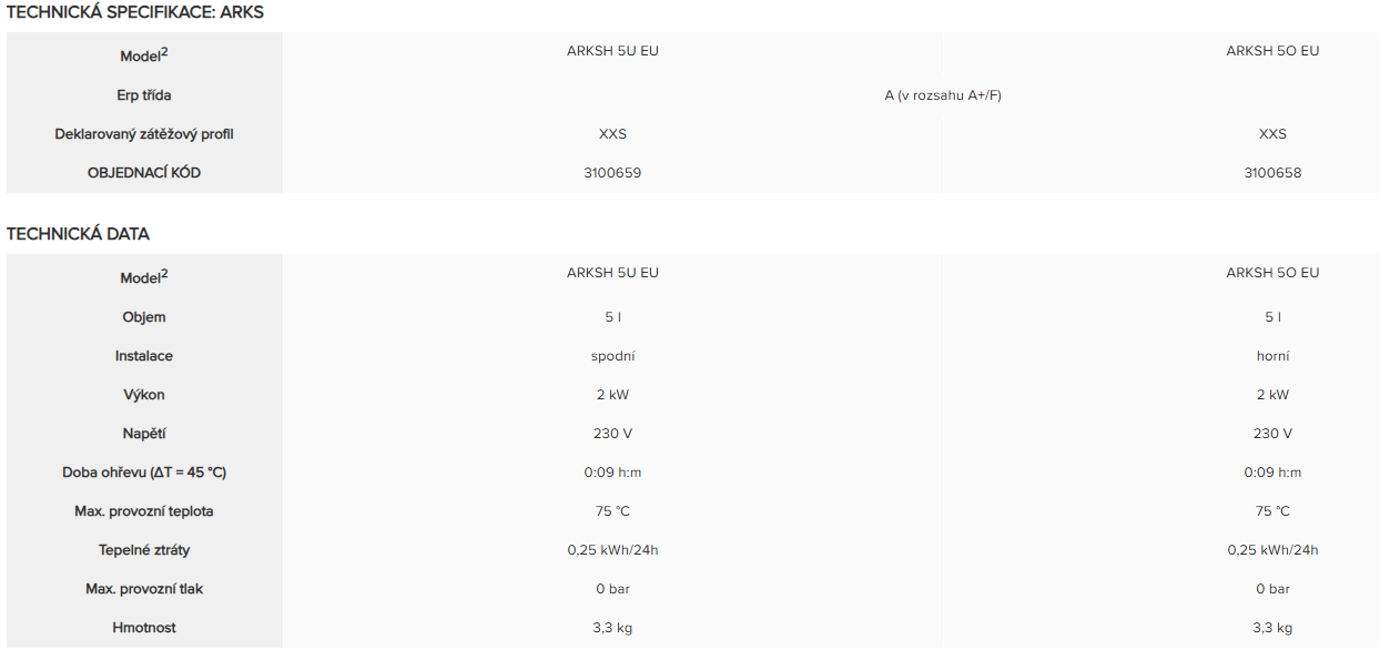 Ariston ARKSH 5U EU elektrický beztlakový ohřívač vody s baterií