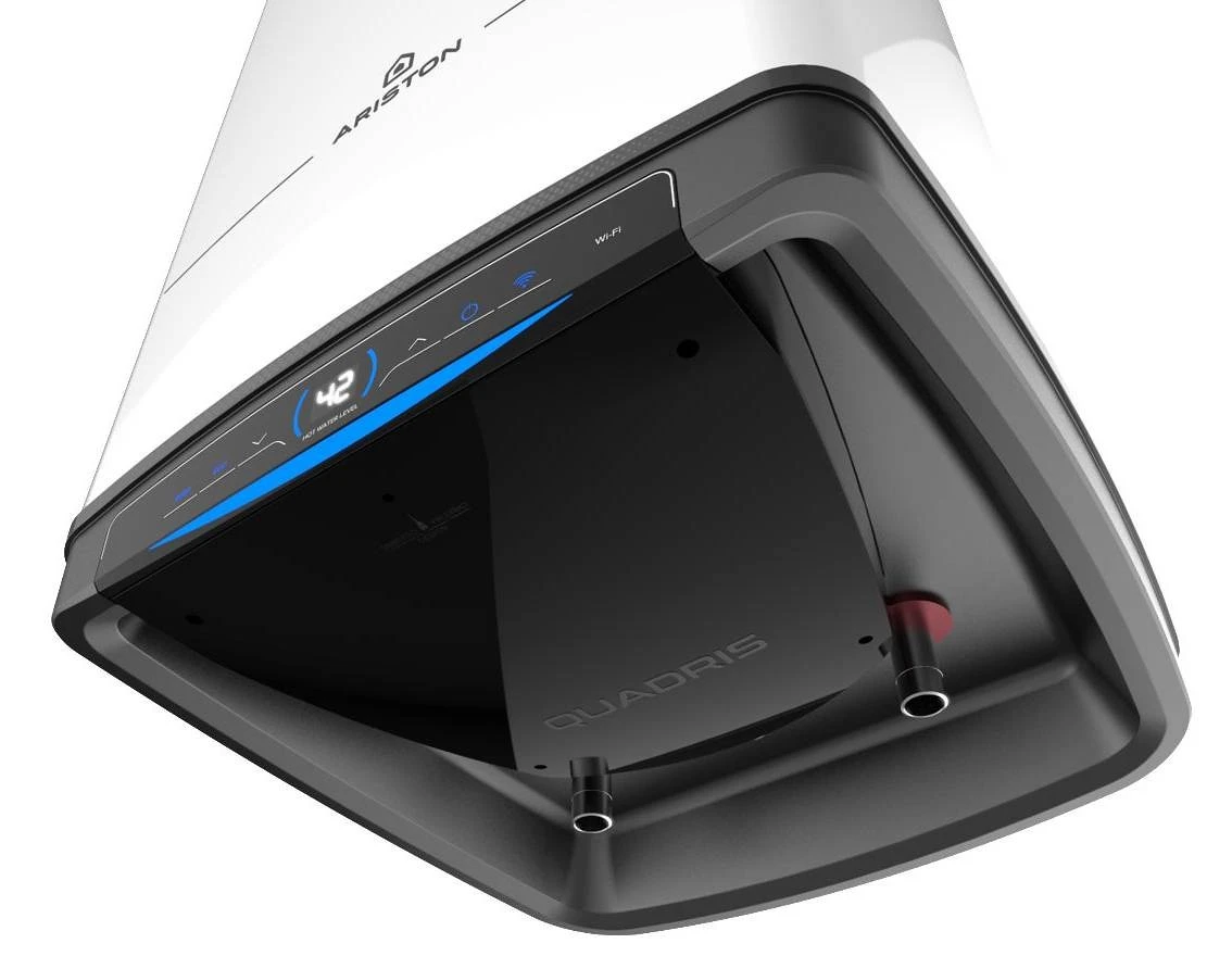 Bojler Ariston Quadris 150 WiFi FR EU je vybaven intuitivním ovládacím panelem, který umožňuje snadné sledování a úpravy teploty a ohřevu vody. Díky bezplatné aplikaci Ariston NET, dostupné pro zařízení Apple a Android, získáte plnou kontrolu nad bojlerem přímo ze svého chytrého telefonu. Aplikace vám umožňuje přizpůsobit teplotní režimy, nastavit topné plány a sledovat spotřebu energie pro optimalizaci nákladů a zajištění většího pohodlí.