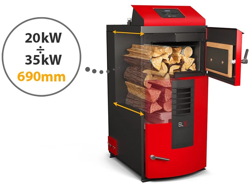 Kombinovaný kotel na dřevo a pelety využívá všech výhod kotle SLX a výjimkou není ani vysoký komfort. Ten poskytuje nadstandardně objemná nakládací komora (200 litrů) a dlouhá výdrž vytápění na jedno naložení paliva. Pokud se rozhodnete topit z tohoto kotle dřevem ušetřete svůj čas zpracováním dřeva na menší kusy. Větší kusy dřeva, ušetří nejen čas ale i prodlouží výdrž hoření na jedno naložení paliva.