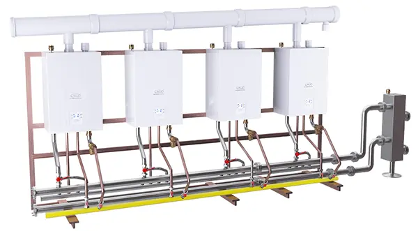 Kotle Condensing KT jsme navrhli tak, aby umožňovaly kaskádové zapojení až 4 kotlů. Pro zapojení do kaskády musíte použít kaskádový řadič, který je možné zakoupit jako příslušenství. Kaskádový řadič inteligentně řídí zapojené kotle a poskytuje dokonalou kontrolu nad zapojeným systémem.