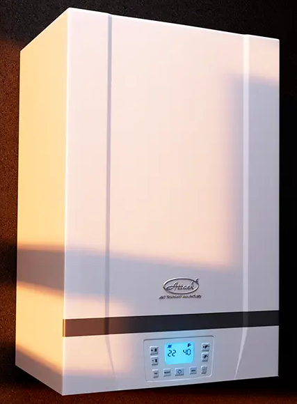 ATTACK Condensing KZT 25 je závěsný plynový kondenzační kotel se zabudovaným 60l zásobníkem na TUV a inteligentním řízením. Kotel dosahuje výrazné úspory spotřeby plynu díky plynulé modulaci výkonu až 1:10 a inteligentnímu spalovacímu systému ISC může fungovat i s minimálním výkonem od 2,6-26 kW, což je skvělou volbou pro domácnosti s vysokým nárokem na dodávku TUV. Kotel lze ovládat i podle venkovní teploty (ekvitermní regulace).