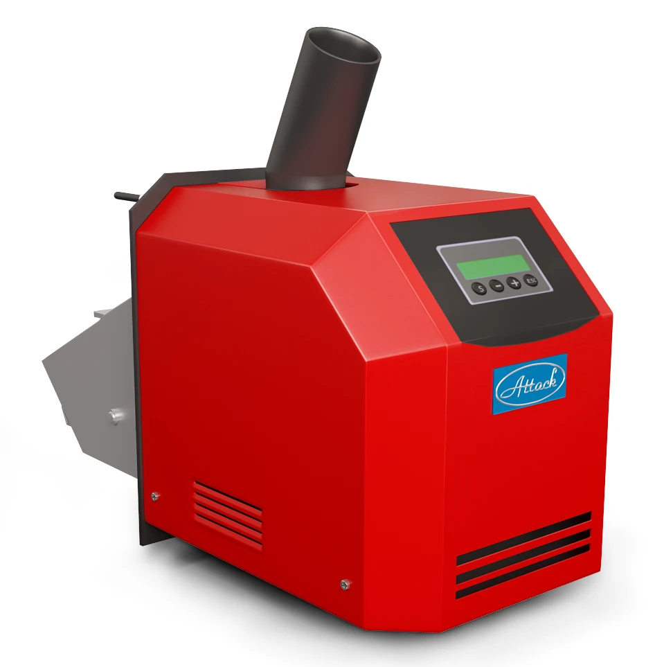 Hořák na pelety ATTACK Pellet Burner Automatic je od začátku konstruován tak, aby nabídl komfort nejen při spalování paliva, ale i nastavování a ovládání. Z podavače paliva se automaticky natáhnou pelety, které padají do hořáku na rošt, kde se elektrickým zapalováním rozhoří a začne samotné spalování. Výkon hořáku si můžete jednoduše nastavit podle vašich požadavků v rozsahu 8 – 30 kW vždy o 2 kW nižší nebo vyšší. Komfort při ovládání hořáku můžete zvýšit, pokud pro řízení jeho provozu využijete pokojový termostat.