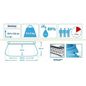 Vodní kapacita bazénu 457 x 122 cm činí 13 807 litrů.