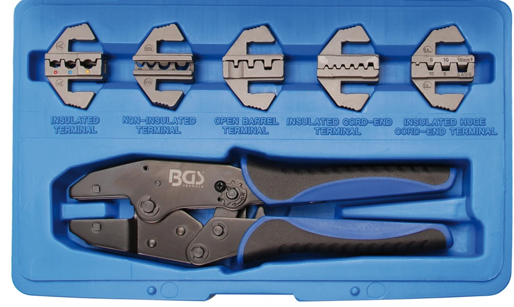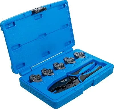 zahrnuje 5 výměnných párů krimpovacích čelistí pro: