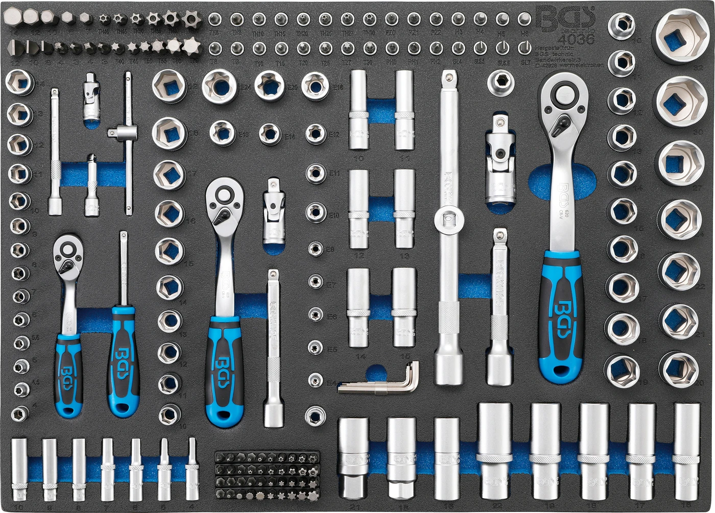 Pěnová vložka (modul) gola sada, hlavice, imbus, torx, 192 dílů - BGS 4036 značky BGS je praktická pěnová vložka do montážního vozíku pro přehledné uložení nářadí. Pomáhá udržet pořádek v zásuvkách, zrychluje práci a chrání nástroje proti poškození. Ideální pro autoservis i dílnu, kde se počítá rychlost a organizace.