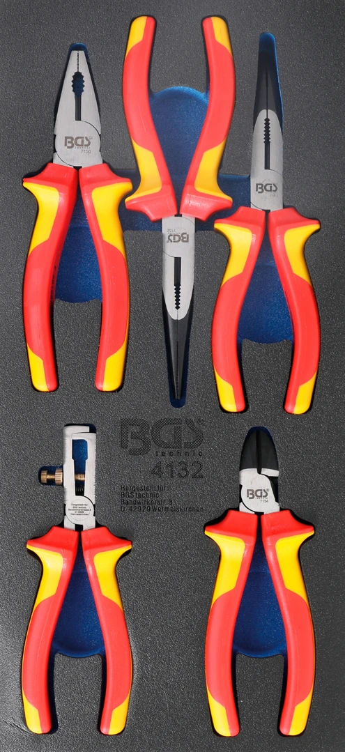 Pěnová vložka (modul) kleště VDE, kombinační, štípací, telefonní, odizolační, 5 dílů – BGS značky BGS jsou kvalitní kleště určené pro profesionální i hobby použití. Poskytují pevný úchop, přesnou manipulaci a vysokou odolnost při každodenní práci. Vhodné pro autoservis, montáže i domácí dílnu.
