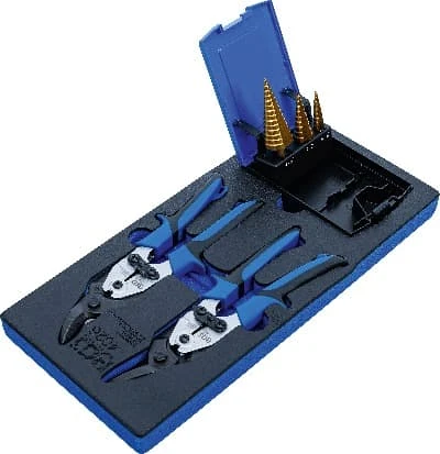 Pěnová vložka (modul) nůžky na plech L+P, kónické vrtáky 3 díly - BGS 4026 značky BGS je praktická pěnová vložka do montážního vozíku pro přehledné uložení nářadí. Pomáhá udržet pořádek v zásuvkách, zrychluje práci a chrání nástroje proti poškození. Ideální pro autoservis i dílnu, kde se počítá rychlost a organizace.