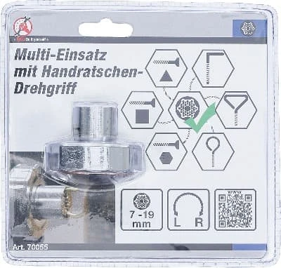 BGS Multifunkční vložka, s ráčnovou otočnou rukojetí, přepínací, 7–19 mm