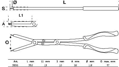pro uvolnění a upevnění pojistných kroužků máčet izolované rukojeti s protiskluzovým povrchem špička...