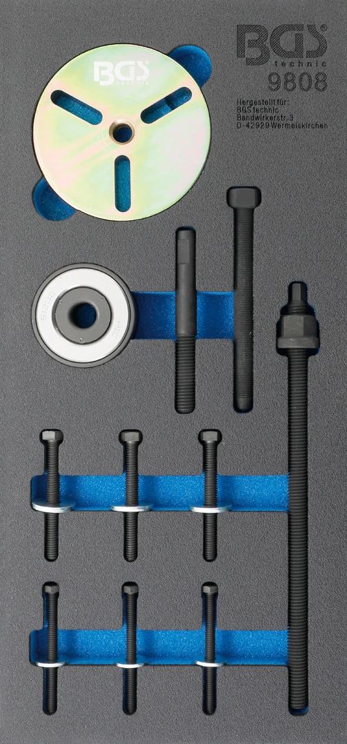 Pěnová vložka (modul) Sada nářadí na řemenici pro klikový hřídel, pro MINI Cooper motory W značky BGS je praktická pěnová vložka do montážního vozíku pro přehledné uložení nářadí. Zrychlí práci díky jasnému rozložení, chrání nástroje a pomůže hned poznat, když něco chybí. Skvělé řešení pro autoservis i dílnu, kde se počítá pořádek a efektivita.