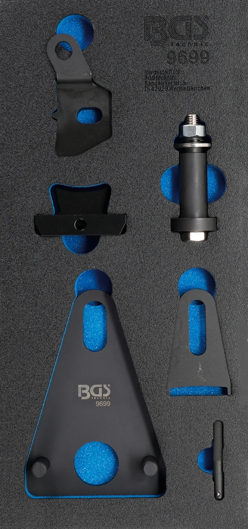 Pěnová vložka (modul) Sada nástrojů pro blokování setrvačníku / řemenice pro klikový hříde značky BGS je praktická pěnová vložka do montážního vozíku pro přehledné uložení nářadí. Zrychlí práci díky jasnému rozložení, chrání nástroje a pomůže hned poznat, když něco chybí. Skvělé řešení pro autoservis i dílnu, kde se počítá pořádek a efektivita.
