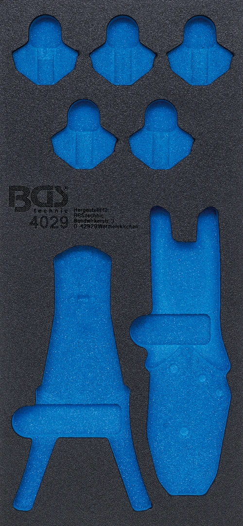 Pěnová vložka (modul) do dílenského vozíku 1/3, prázdná, pro 4029 – BGS 4029-1 značky BGS je profesionální pěnová vložka určená pro přehledné uspořádání nářadí v zásuvkách montážního vozíku. Pomáhá udržet pořádek, chrání nástroje a zvyšuje efektivitu práce v autoservisu i dílně.