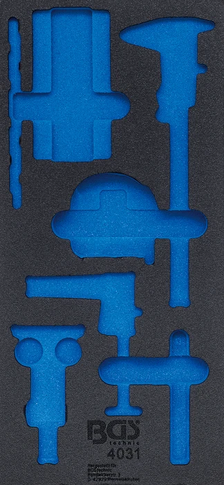 Pěnová vložka (modul) do dílenského vozíku 1/3, prázdná, pro 4031 – BGS 4031-1 značky BGS je profesionální pěnová vložka určená pro přehledné uspořádání nářadí v zásuvkách montážního vozíku. Pomáhá udržet pořádek, chrání nástroje a zvyšuje efektivitu práce v autoservisu i dílně.
