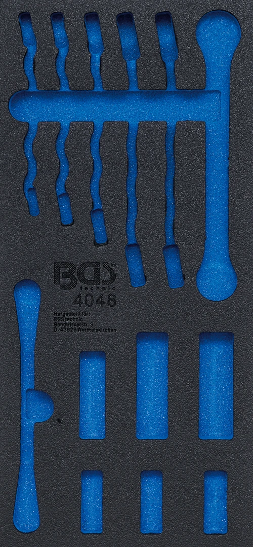 Pěnová vložka (modul) do dílenského vozíku 1/3, prázdná, pro 4048 – BGS 4048-1 značky BGS je profesionální pěnová vložka určená pro přehledné uspořádání nářadí v zásuvkách montážního vozíku. Pomáhá udržet pořádek, chrání nástroje a zvyšuje efektivitu práce v autoservisu i dílně.
