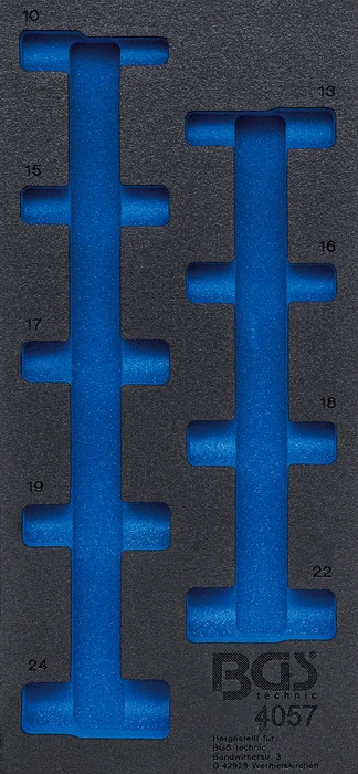 Pěnová vložka (modul) do dílenského vozíku 1/3, prázdná, pro 4057 – BGS 4057-1 značky BGS je profesionální pěnová vložka určená pro přehledné uspořádání nářadí v zásuvkách montážního vozíku. Pomáhá udržet pořádek, chrání nástroje a zvyšuje efektivitu práce v autoservisu i dílně.