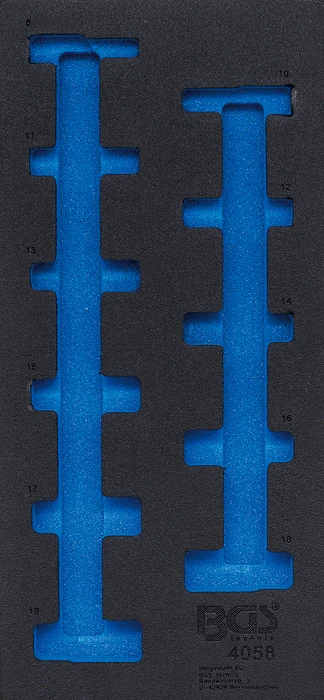 Pěnová vložka (modul) do dílenského vozíku 1/3, prázdná, pro 4058 – BGS 4058-1 značky BGS je profesionální pěnová vložka určená pro přehledné uspořádání nářadí v zásuvkách montážního vozíku. Pomáhá udržet pořádek, chrání nástroje a zvyšuje efektivitu práce v autoservisu i dílně.