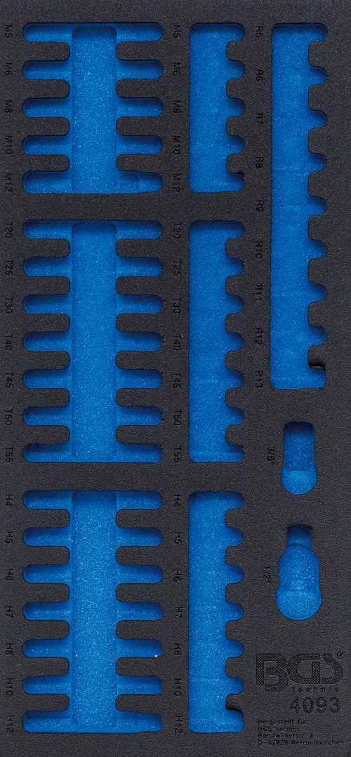 Pěnová vložka (modul) do dílenského vozíku 1/3, prázdná, pro 4093 – BGS 4093-1 značky BGS je profesionální pěnová vložka určená pro přehledné uspořádání nářadí v zásuvkách montážního vozíku. Pomáhá udržet pořádek, chrání nástroje a zvyšuje efektivitu práce v autoservisu i dílně.