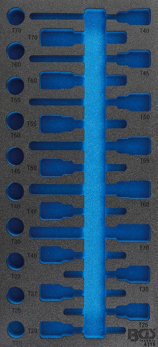 Pěnová vložka (modul) do dílenského vozíku 1/3, prázdná, pro BGS 4119 – BGS 4119-1 značky BGS je profesionální pěnová vložka určená pro přehledné uspořádání nářadí v zásuvkách montážního vozíku. Pomáhá udržet pořádek, chrání nástroje a zvyšuje efektivitu práce v autoservisu i dílně.