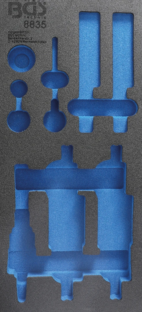 Pěnová vložka (modul) do dílenského vozíku 1/3, prázdná, pro BGS 8835 – BGS 8835-1 značky BGS je profesionální pěnová vložka určená pro přehledné uspořádání nářadí v zásuvkách montážního vozíku. Pomáhá udržet pořádek, chrání nástroje a zvyšuje efektivitu práce v autoservisu i dílně.