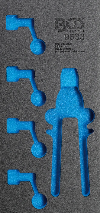 Pěnová vložka (modul) do dílenského vozíku 1/3, prázdná, pro BGS 9533 – BGS 9533-2 značky BGS je profesionální pěnová vložka určená pro přehledné uspořádání nářadí v zásuvkách montážního vozíku. Pomáhá udržet pořádek, chrání nástroje a zvyšuje efektivitu práce v autoservisu i dílně.