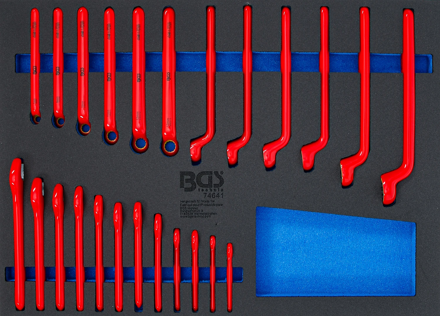 BGS Vložka do dílenského vozíku 3/3: sada očkových klíčů VDE a jednostranných plochých klíčů V (3)