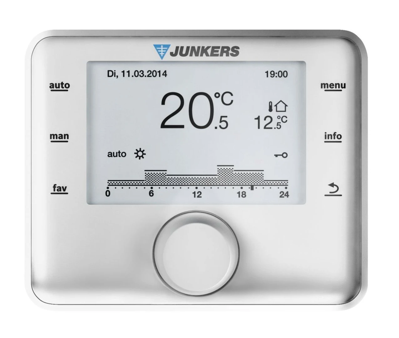 Špičkový regulátor teploty pro až 4 topné okruhy určený pro kotle Junkers a Bosch s elektronikou Bosch Heatronic. Ovládání je velice jednoduché, podobá se menu v mobilních telefonech. Ve spojení s kotli Junkers a Bosch zajišťuje plynulou regulaci výkonu a pomáhá tak udržet naprosto přesně nastavenou teplotu. Kromě týdenního programu pro vytápění lze nastavit i program na ohřev užitkové vody (ECO/COM). Nastavit můžete 6 spínacích bodů denně. Samozřejmostí je zobrazení poruch kotle na podvíceném displeji. Zapojení lze provést pomocí dvoužilového kabelu a svorek B-B. Čidlo venkovní teploty pro ekvitermní regulaci není součástí balení.