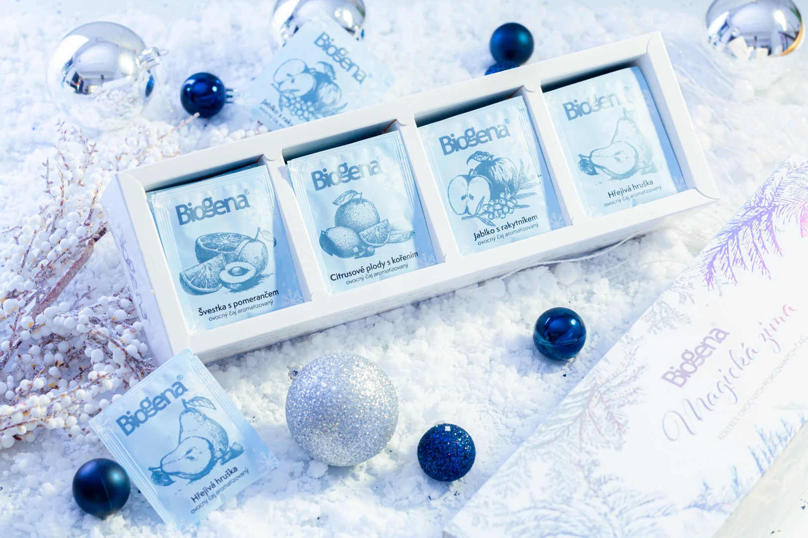 Zažijte kouzlo zimního období s čajovou kazetou BIOGENA Magická zima. Tato exkluzivní dárková sada v nádherném vánočním designu je stvořená pro chvíle pohody, odpočinku a sváteční atmosféry. Ukryté v ní najdete čtyři jedinečné čajové směsi, které potěší rozmanitostí chutí i vůní – svěží a kořeněné citrusové plody, lahodně sladkou hrušku, švestku s pomerančem plnou chuťových kontrastů a přírodní osvěžení v podobě jablka s rakytníkem. Každý šálek vás zahřeje v chladných dnech, navodí pocit útulna a vnese do běžných okamžiků kousek sváteční magie. BIOGENA Magická zima je ideálním dárkem pro vaše blízké, ale i skvělou volbou pro chvíle, kdy si chcete dopřát něco výjimečného jen sami pro sebe.