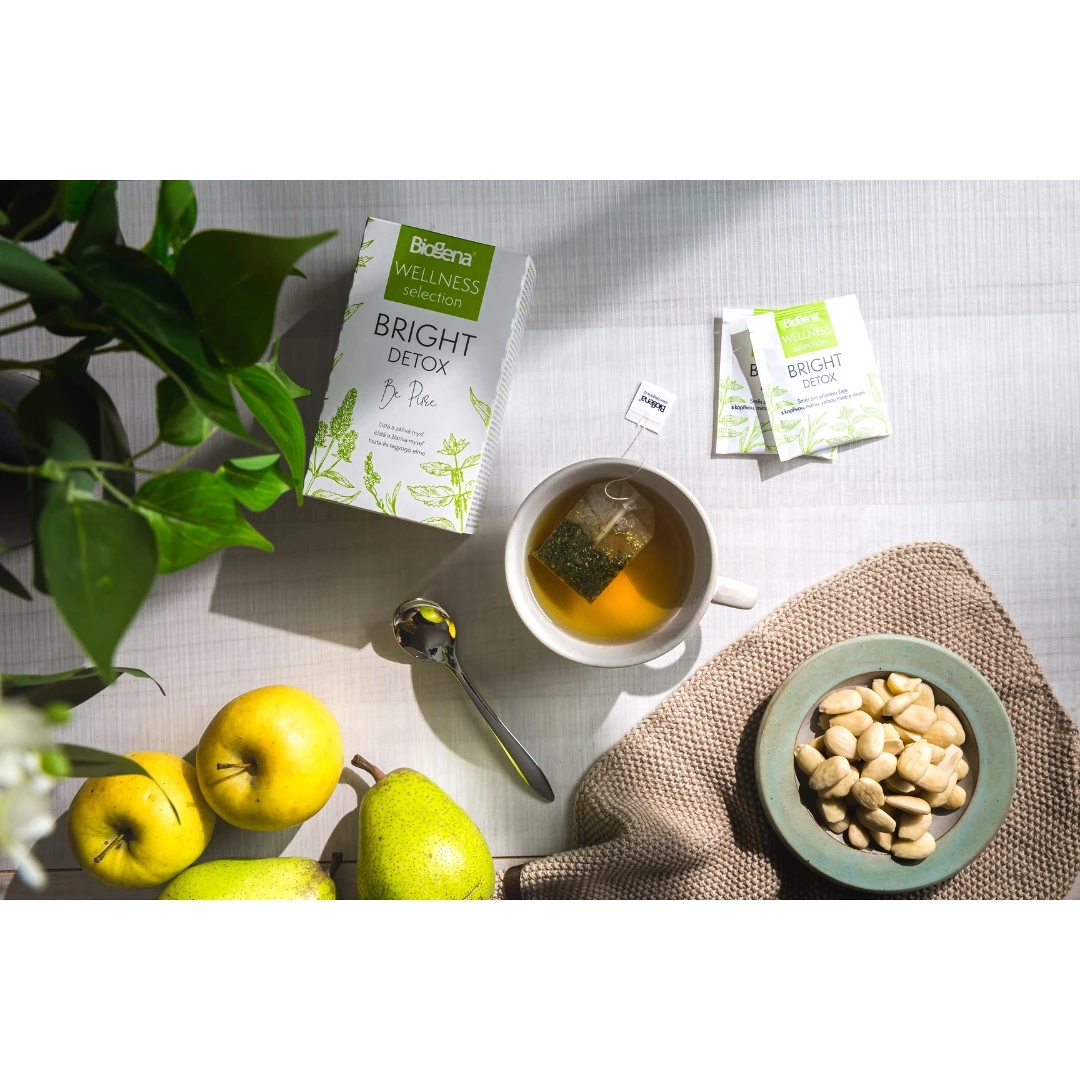 Nastartujte Váš nový den s lehkostí a podpořte přirozené procesy očisty organismu s bylinným čajem Biogena Bright Detox. Tato harmonická směs byla pečlivě sestavena tak, aby přispívala k detoxikaci a podpořila odvodnění těla přirozeným způsobem. Spojení kopřivy a máty tvoří základ s jemně očistným účinkem, zatímco list yerba maté dodává přirozenou dávku energie díky obsahu kofeinu. Vřes, citronová kůra a ostružinový list doplňují směs o lahodné tóny a vytvářejí příjemně osvěžující chuťový zážitek. Tento porcovaný bylinný čaj je skvělým společníkem pro dny, kdy toužíte po dosažení vnitřní rovnováhy, svěžesti a vitalitě. Tento bylinný čaj je ideální si vychutnat jako ranní impuls nebo ho zařadit do Vašeho dne jako součást očistné rutiny.