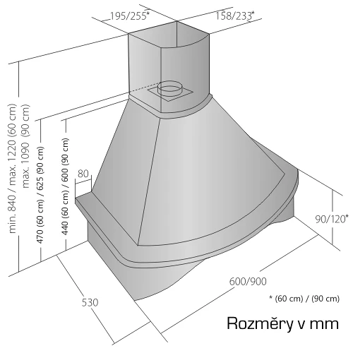 | Min. výška nad plynovou deskou | 750 |