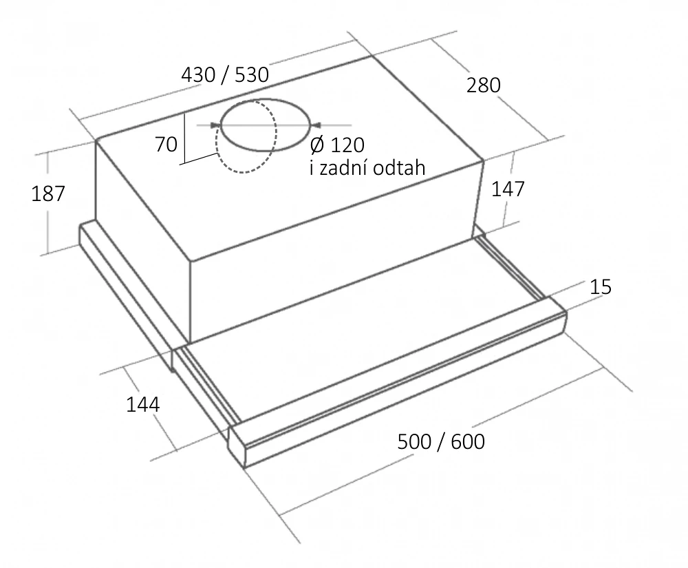 | Osvětlení | 1 × 2,8 W LED pásek |