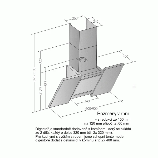 | Průměr odtahu | 150, zdarma redukce 150 / 120 mm |