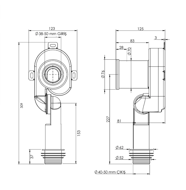 | Průměr odpadu | 50 mm |