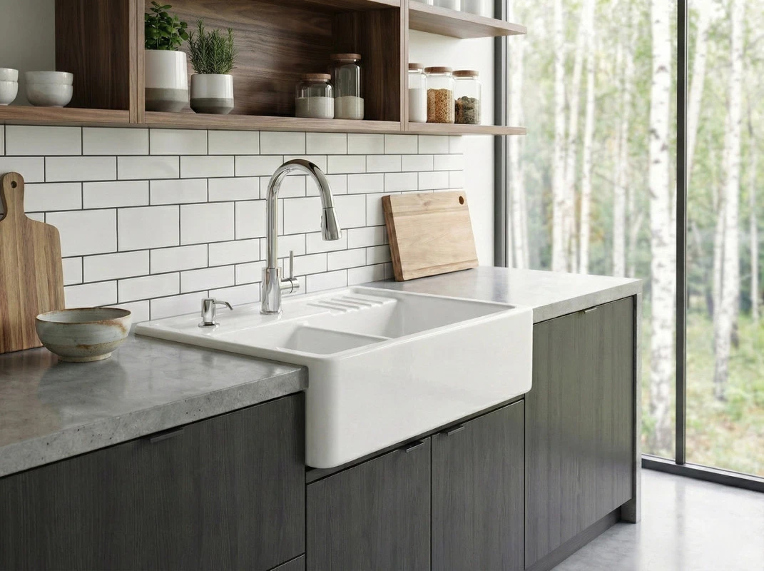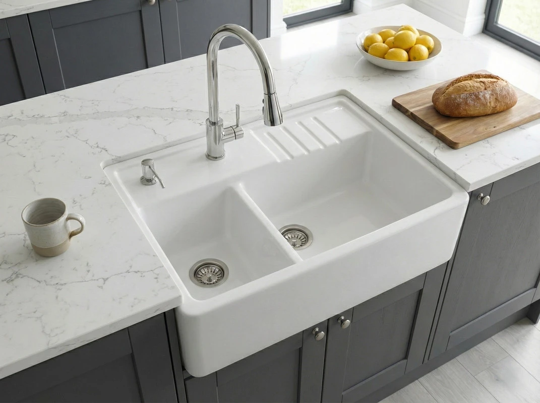Rádi bychom Vás informovali, že se jedná o keramický dřez, který je vyráběn tradičním způsobem – odléváním do forem a následným vysokoteplotním výpalem v peci při teplotách okolo 1200 °C. V průběhu tohoto procesu může docházet k drobným změnám ve struktuře materiálu, zejména na místech, která nejsou pohledová, tedy na spodní části dřezu, která se při běžném používání nijak nevystavuje pohledu ani nepřichází do kontaktu s vodou či nádobím.