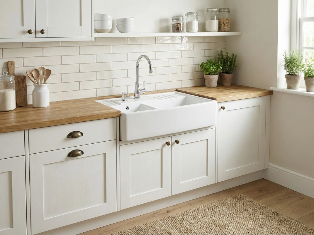 Jemné vlasové prasklinky, které se mohou objevit právě na této spodní, technické části dřezu, vznikají vlivem smršťování materiálu během vypalování. Tento jev je u keramických výrobků tohoto typu běžný a nijak neohrožuje pevnost, vodotěsnost ani celkovou funkčnost dřezu. Tyto mikrotrhliny se navíc vyskytují na neglazované části, která slouží pouze ke konstrukčním účelům (např. připevnění k pracovní desce) a nemají žádný dopad na vzhled ani uživatelský komfort.