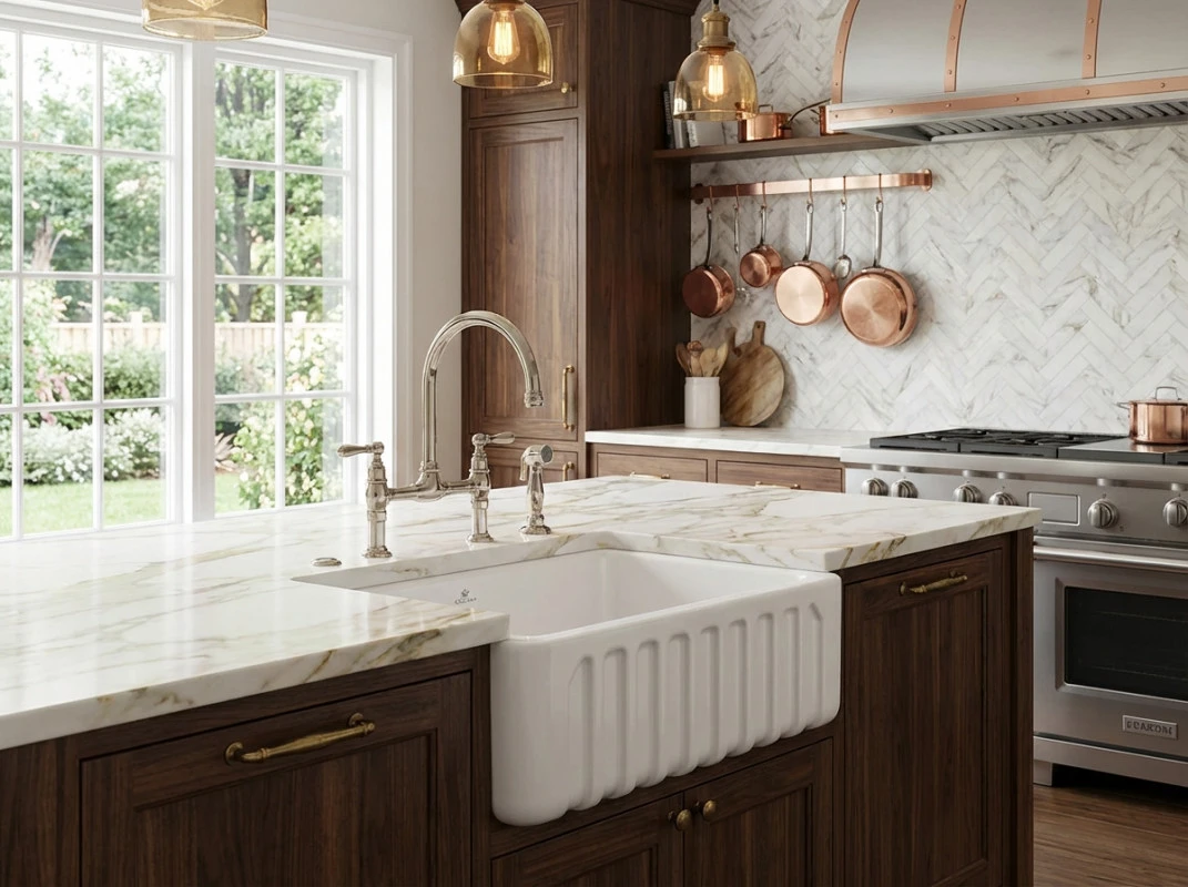 Luxusní dřez francouzské značky Chambord Louis 795 někdy jej také můžete najít pod názvem Chambord Louis II. Kuchyňský dřez Louis 795 vás uchvátí propracovanou vroubkovanou přední stranou. Díky svému ušlechtilému a extrémně rafinovanému vzhledu dodá vaší kuchyni směs prestiže a historie. Stylově se hodí nejen do tzv. venkovské kuchyně ale své místo si najde i v moderním designu.