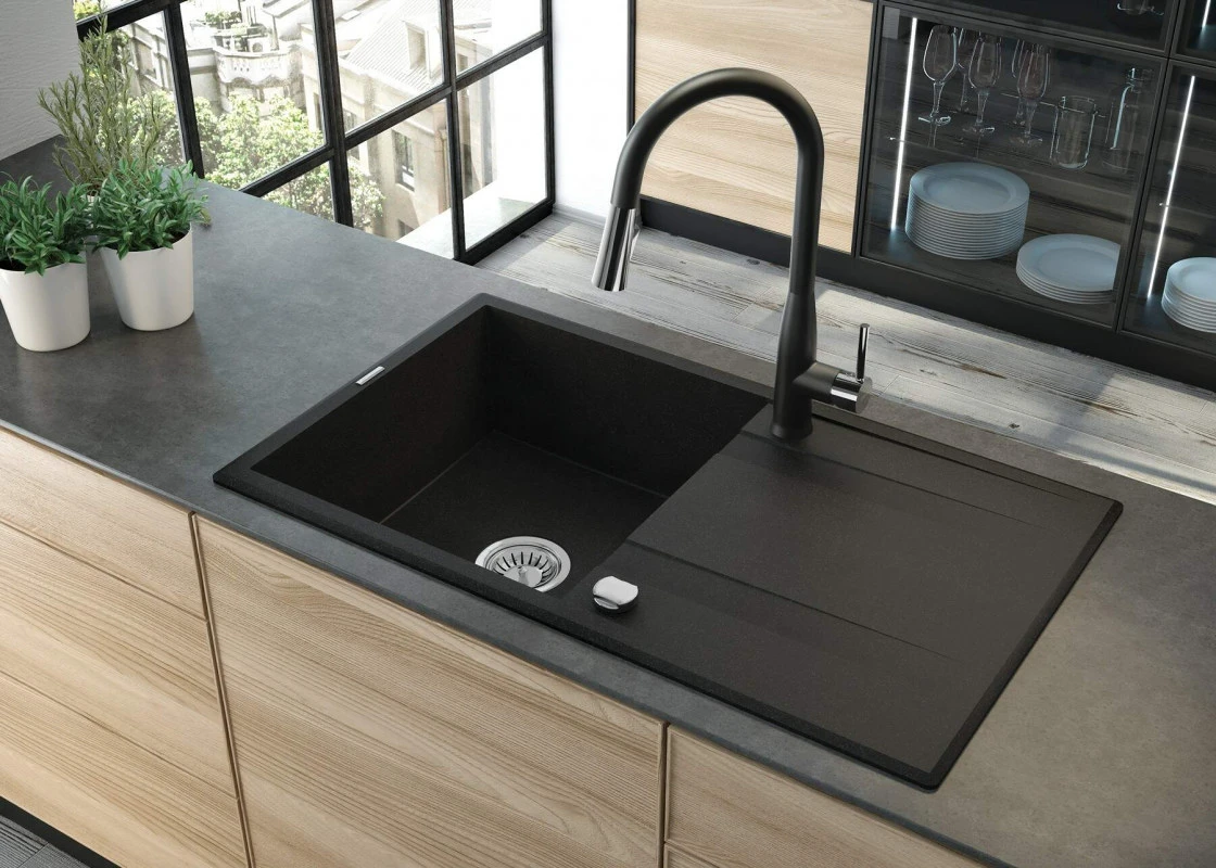 Výhodou granitového dřezu je jeho barevná variabilita a možnost sladění se zbytkem vaší kuchyně, jednoduchá údržba a atraktivní vzhled. Žula, ze které je dřez vyroben, je materiál odolný vůči poškrábání, změně barvy a vysoké teplotě. Sifon šetřící prostor, který je součástí sady, má speciální design, který zabírá velmi málo místa.
