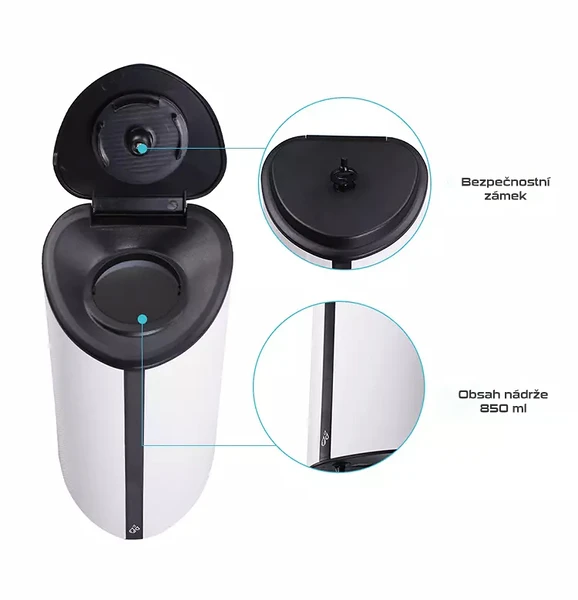 Automatický dávkovač funguje zcela bezkontaktně. Dávka gelové dezinfekce či mýdla je vydána po přiložení rukou pod dávkovač. Díky bezkontaktnímu provozu nedochází ke kontaminaci bakteriemi a viry.