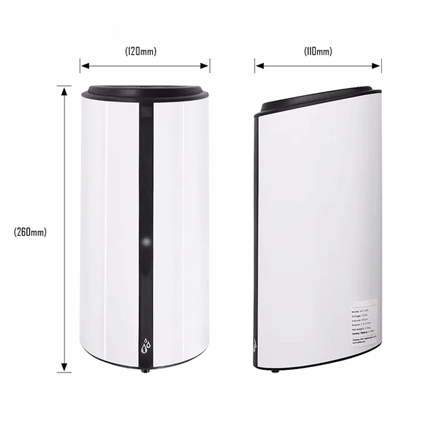Automatický dávkovač DROP Gel je dostupný ve dvou barevných provedeních, bílé a stříbrné barvě. Tělo přístroje je vyrobeno z odolného ABS plastu.