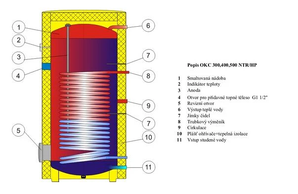 | Typ zásobníku | OKC 250 NTR/HP | OKC 300 NTR/HP | OKC 400 NTR/HP | OKC 500 NTR/HP | OKC 750 NTR/HP | OKC 1000 NTRR/BP |