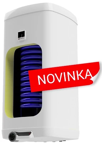 Svislý zásobník teplé vody s jedním výměníkem vhodným k různým zdrojům tepla.