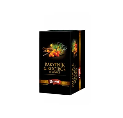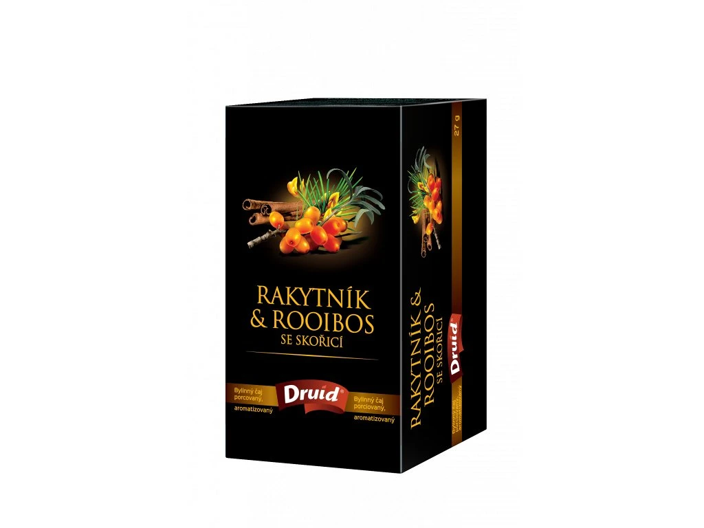 Pečlivě vybraná řada čajů a čajových směsí pro opravdový chuťový požitek. Výjimečná a delikátní kombinace dvou protikladů. Rakytník, jehož pozitivní účinek je známý, je typický kyselými šťavnatými plody. Rooibos nás okouzluje jehlicovitými listy a zejména zemitou načervenalou barvou a jemně nasládlou chutí nálevu. Kombinace sladkokyselé chuti a přítomností oblíbené skořice vytváří celkově příjemný, neotřelý a osvěžující chuťový prožitek. Výhodu nápoje z této směsi bylin a koření je absence kofeinu, takže je vhodný i pro děti, kojící matky a sportovce.