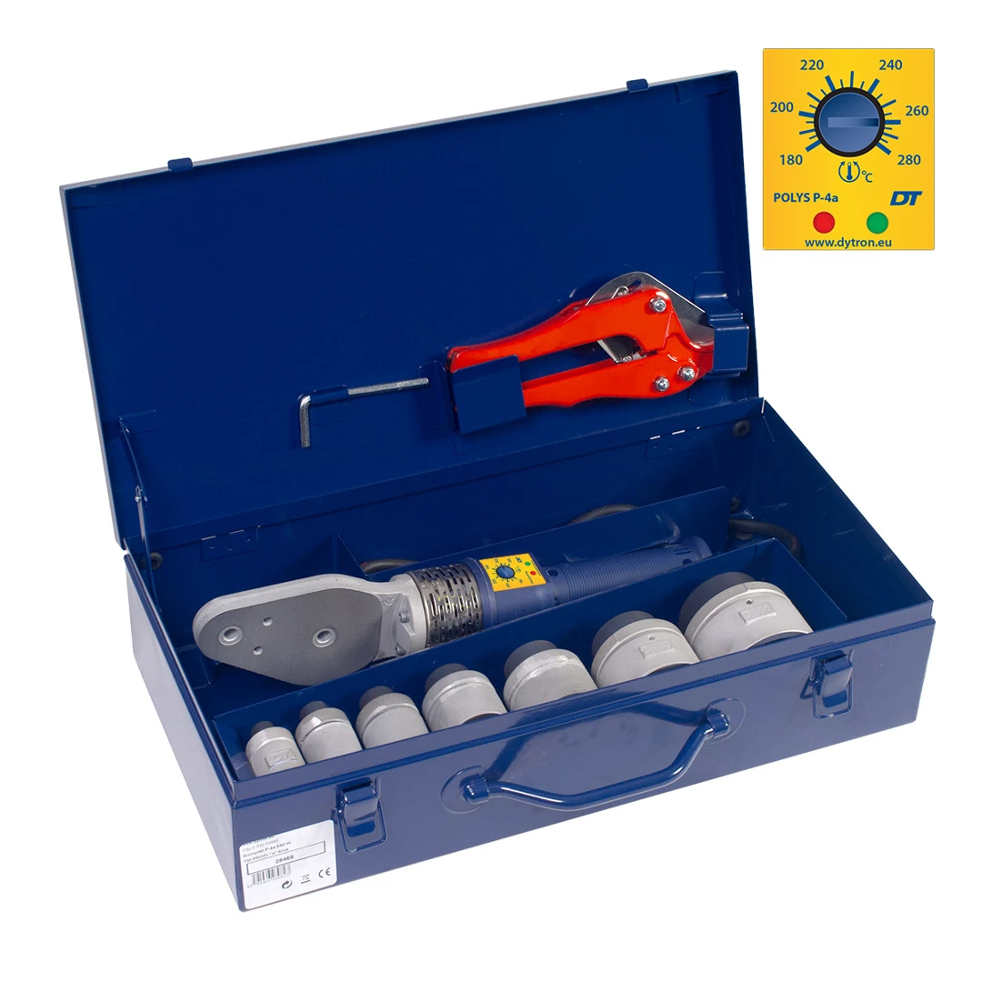 Polyfúzní svářecí komplet Dytron P-4a 850W PROFI KOMPLET je profesionální sada určená pro svařování plastového potrubí (např. PP, PE, PB) pomocí tvarovek.