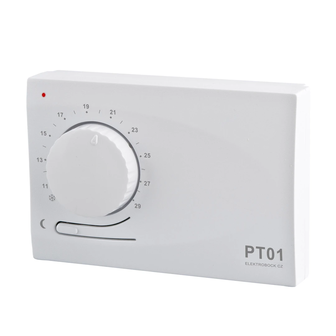 * PT01 je jednoduchý elektronický prostorový termostat pro manuální regulaci vytápění