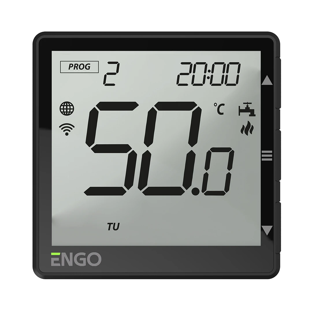 ENGO EHW-B je moderní Wi-Fi spínač navržený speciálně pro efektivní řízení přípravy teplé užitkové vody (TUV). Díky elegantnímu černému designu a minimalistickému provedení se skvěle hodí do moderních interiérů, zatímco jeho chytré funkce vám zajistí maximální komfort při minimální spotřebě.