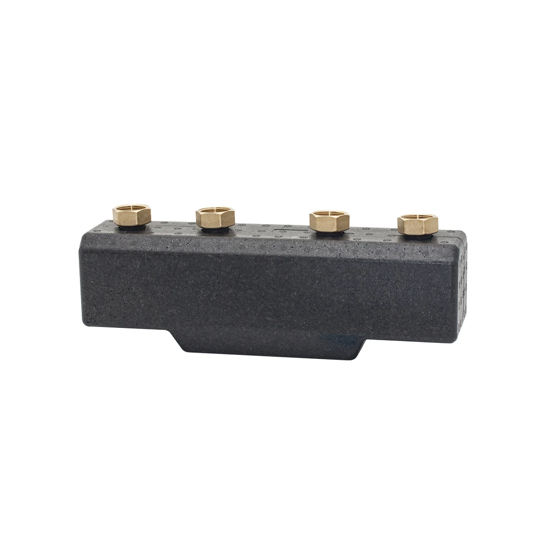 Obsah balení: Tělo rozdělovače, izolační kryt EPP, sada pro montáž na stěnu, plochá těsnění.